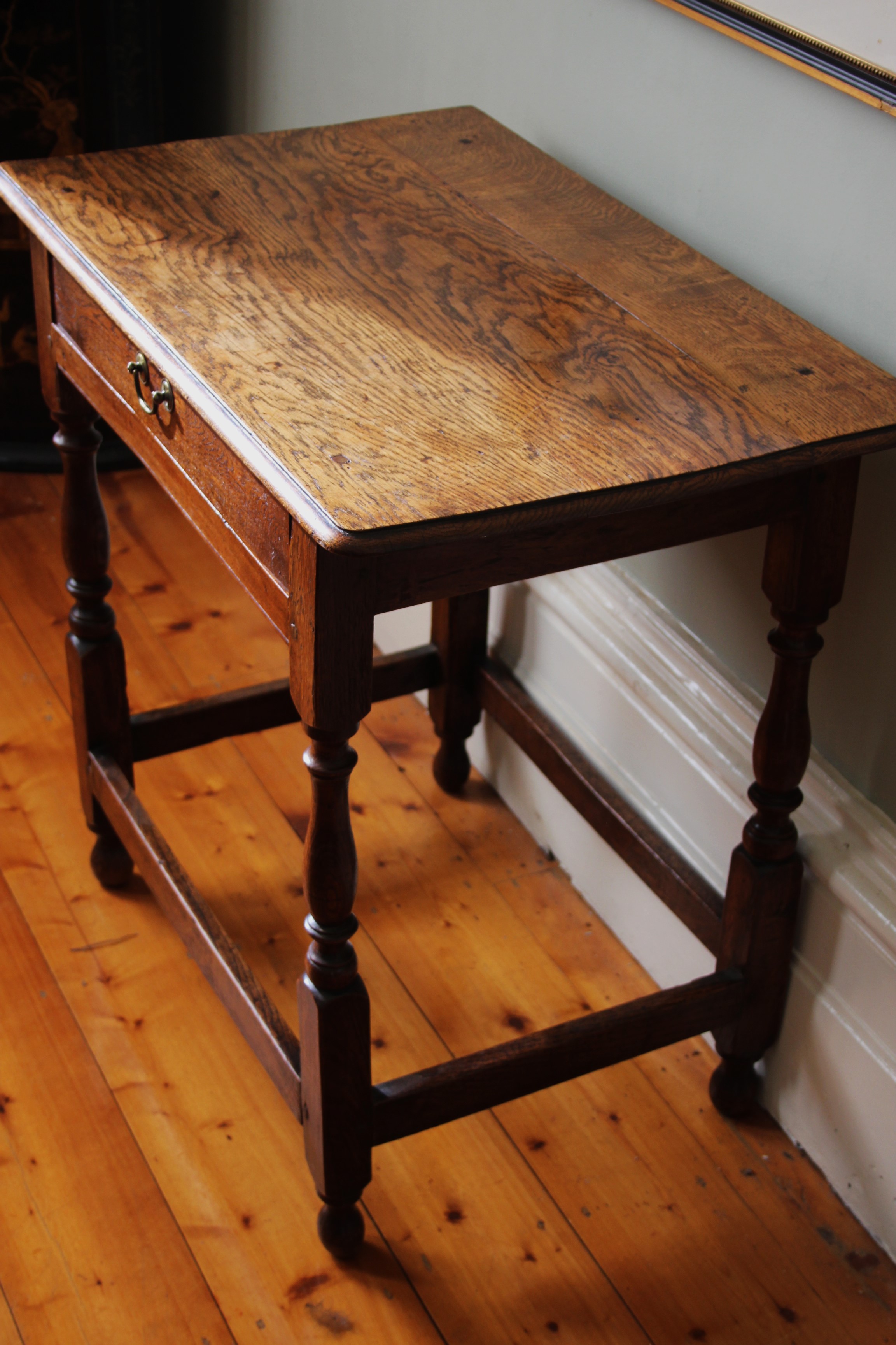 Early 18th Century Oak Side Table in totally original condition including swan neck handle on the drawer, feet etc
