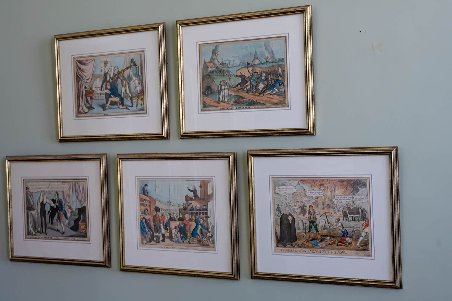 Five Caricatures by William Heath and George Cruikshank, coloured engravings, framed and mounted.