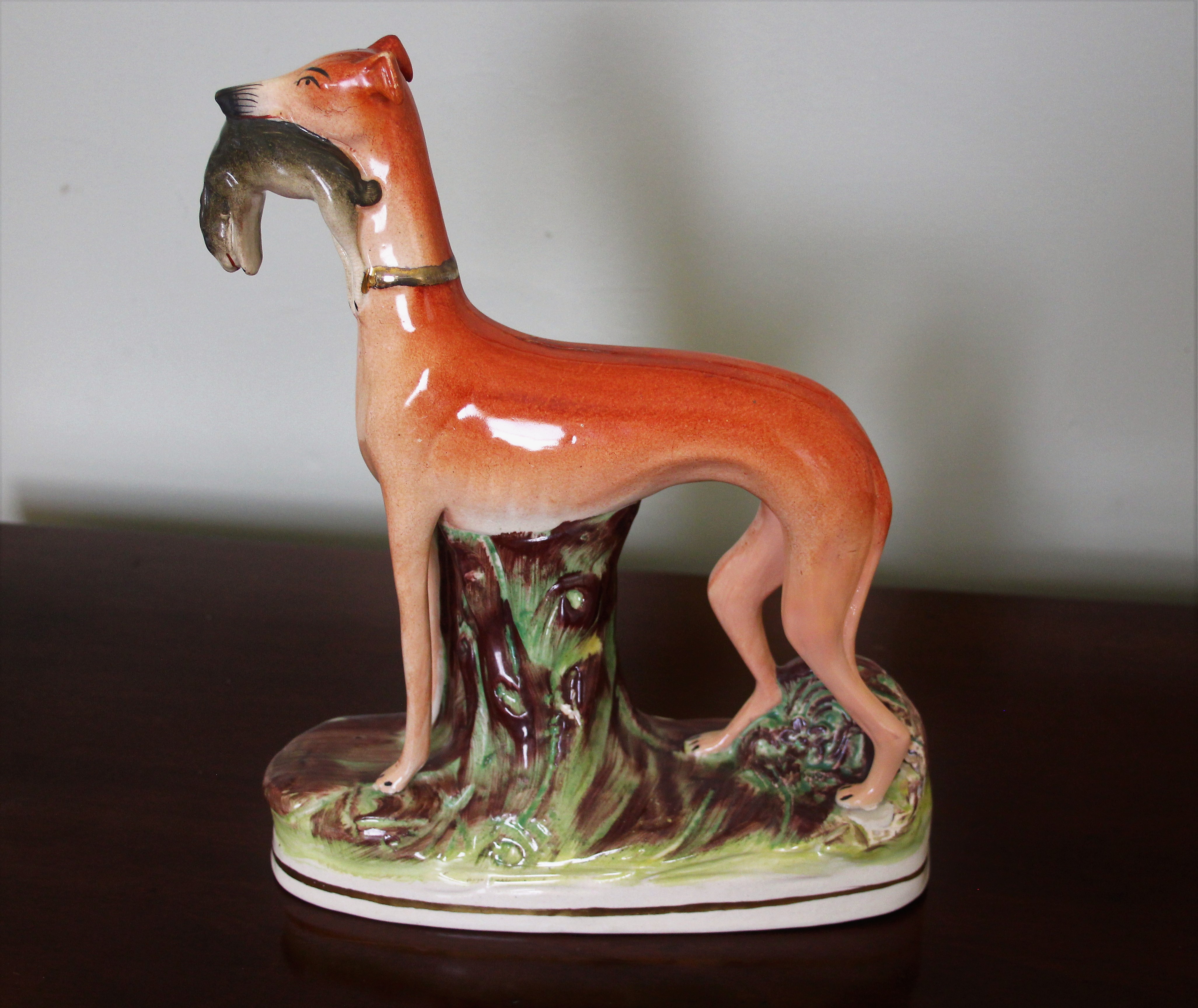 Staffordshire very large Greyhound with hare in his mouth